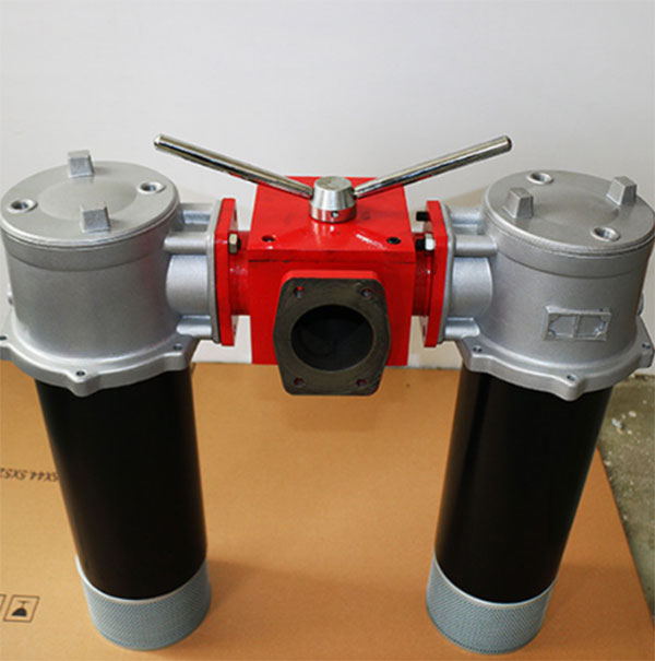 本過濾器適用于需要連續工作,不允許停機清洗濾芯情況下的液壓系統回油管路精過濾,用以濾除系統中的機械和化學雜質,使流回油箱的油液保持清潔。過濾器由一只二位六通換向閥和二只回油管路過濾器組成。其主要性能特點有:  1.當工作的一只過濾器濾芯堵塞,其進出口壓差達到0.35MPa時,發訊器便會發出訊號,這時須及時打開換向閥上的平衡閥,并轉動換向閥,關閉濾芯已堵塞的過濾器的油路,并關閉平衡閥,使備用過濾器進入工作狀態,保持系統的連接運行。然后更換已堵塞的濾芯。  2.當濾芯堵塞,發訊器報警后無人處理故障,進出油口壓差升至O.40MPa時,安裝在濾芯上部的旁通閥便自行開啟,另開油路,避免過濾囂損壞,確保系統照常運行。  3.濾芯采用紙質,化纖,網式和線隙式濾材,適應系統對過濾器的不同需求。